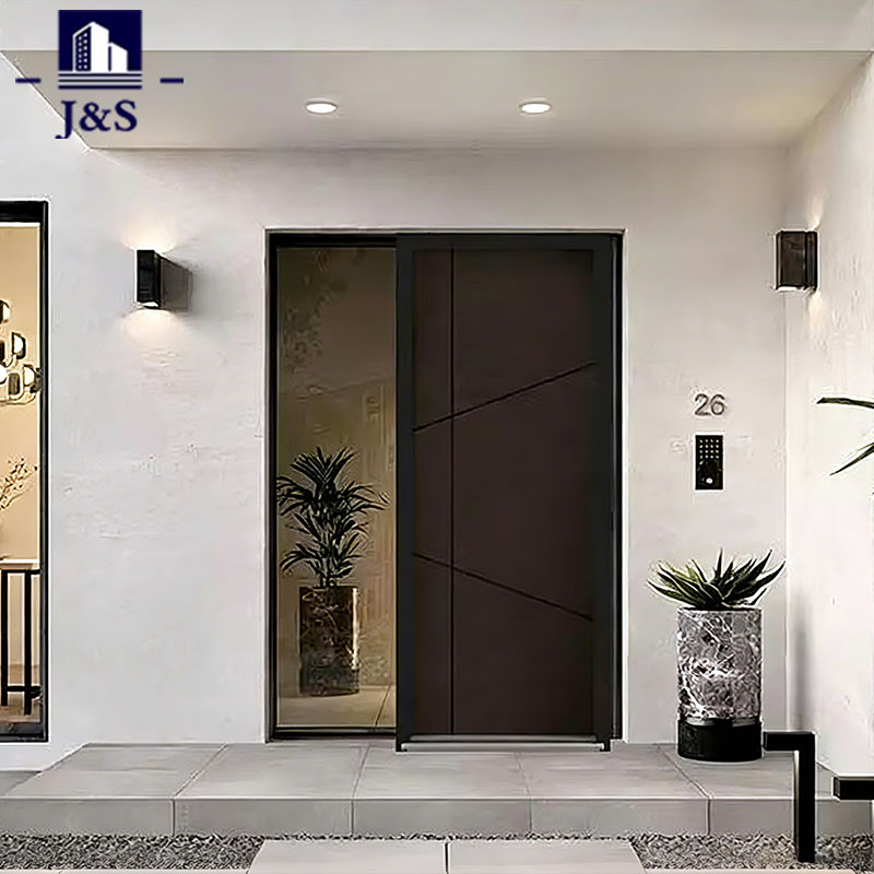 இது ஒரு நவீன அலுமினிய உலோக பாதுகாப்பு கதவு, இது குடியிருப்பு நுழைவாயில்களுக்காக வடிவமைக்கப்பட்டுள்ளது, வலுவான பாதுகாப்புடன் நேர்த்தியான அழகியலை இணைக்கிறது. ஆழமான மேட் நேவி ப்ளூவில் முடிக்கப்பட்ட இது, நான்கு கிடைமட்ட பளபளப்பான உலோகக் கீற்றுகளுடன் கூடிய குறைந்தபட்ச பேனல் அமைப்பைக் கொண்டுள்ளது, இது காட்சி மாறுபாடு மற்றும் கட்டமைப்பு வலுவூட்டலைச் சேர்க்கிறது. இரண்டு உயரமான, குறுகிய உறைந்த கண்ணாடி பக்கவிளக்குகளால் சூழப்பட்டுள்ளது, கதவு இயற்கையான ஒளி பரிமாற்றத்தை தனியுரிமையுடன் சமன் செய்கிறது, அதே நேரத்தில் கூடுதல் நீளமான செங்குத்து துருப்பிடிக்காத எஃகு கைப்பிடி ஒரு பிரீமியம் பிடியையும் சமகால கவர்ச்சியையும் வழங்குகிறது. அதிக வலிமை கொண்ட அலுமினிய கலவையுடன் கட்டப்பட்டுள்ளது, இது சிறந்த அரிப்பு எதிர்ப்பு மற்றும் ஆயுள் வழங்குகிறது, இது வெளிப்புற பயன்பாட்டிற்கு சிறந்தது. சுத்தமான கோடுகள் மற்றும் தொழில்துறை-புதுப்பாணியான பாணியானது வீட்டின் கர்ப் முறையீட்டை உயர்த்துகிறது, அதே நேரத்தில் அதன் திடமான கட்டுமானமானது கட்டாய நுழைவுக்கு எதிராக நம்பகமான பாதுகாப்பை உறுதிசெய்கிறது, குடும்ப வீடுகளுக்கான நவீன பாதுகாப்பு தரங்களுடன் ஒத்துப்போகிறது.