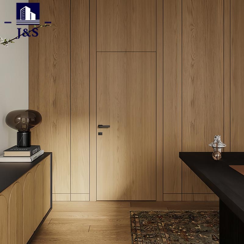 இந்த உட்புற மறைக்கப்பட்ட படுக்கையறை கதவுகள் முழு வீட்டிற்கான தனிப்பயன் வடிவமைப்பின் சாரத்தை உள்ளடக்கியது, இளைஞர்களின் விருப்பமான நவீன அழகியலுடன் முழுமையாக இணைகிறது. சுவரில் தடையின்றி ஒருங்கிணைக்கப்பட்டு, கதவுகள் பாரம்பரிய கதவு பிரேம்கள் மற்றும் பருமனான விளிம்புகளை அகற்றி, சுத்தமான, உடைக்கப்படாத காட்சி ஓட்டத்தை உருவாக்குகின்றன, இது கதவுக்கும் சுவருக்கும் இடையிலான கோட்டை மங்கலாக்கும். மென்மையான, நடுநிலை நிறமுள்ள மேற்பரப்புகள் மற்றும் நேர்த்தியான உலோகக் கைப்பிடிகள் சுற்றியுள்ள குறைந்தபட்ச தளபாடங்கள் மற்றும் மென்மையான சுற்றுப்புற விளக்குகளை நிறைவு செய்கின்றன, இது அமைதியான, அதிநவீன வாழ்க்கை முறையை பிரதிபலிக்கிறது. இந்த வடிவமைப்பு இடஞ்சார்ந்த ஒத்திசைவு மற்றும் குறைவான நேர்த்திக்கு முன்னுரிமை அளிக்கிறது, இது எளிமை, செயல்பாடு மற்றும் ஒருங்கிணைந்த, ஒழுங்கீனம் இல்லாத வாழ்க்கைச் சூழலை மதிக்கும் இளம் வீட்டு உரிமையாளர்களுக்கு இது ஒரு சிறந்த தேர்வாக அமைகிறது. இது சாதாரண கதவுகளை நுட்பமான, ஸ்டைலான கூறுகளாக மாற்றுகிறது, இது விண்வெளி மற்றும் நவீனத்துவத்தின் ஒட்டுமொத்த உணர்வை மேம்படுத்துகிறது.