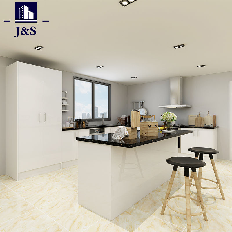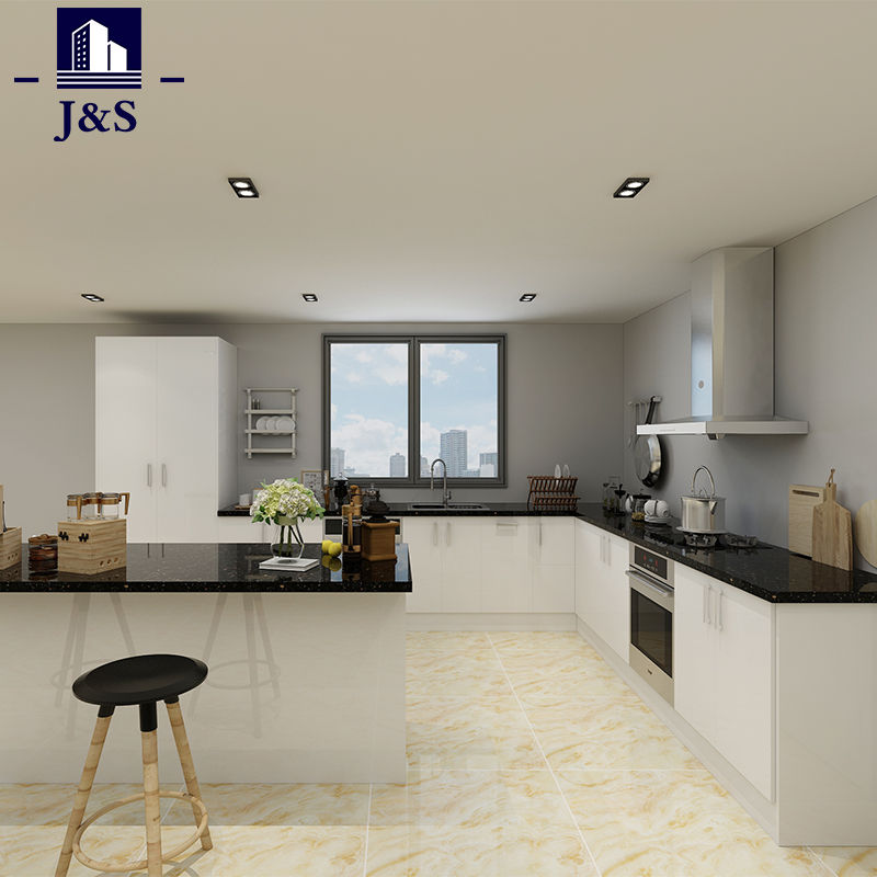 J&S சப்ளை மாடர்ன் ஸ்டைல் ஒயிட் ஷேக்கர் டோர் டிசைன் கிச்சன் கேபினெட்டுகள் டூ பேக் கிச்சன். இது பெரும்பாலான நாடுகளில் பிரபலமான மற்றும் பொருளாதார வடிவமைப்பாகும். சமையலறைகளின் நீண்ட ஆயுளை உறுதிசெய்யும் சிறந்த தரமான கீல்கள் மற்றும் டிராயர் ரன்னர்.