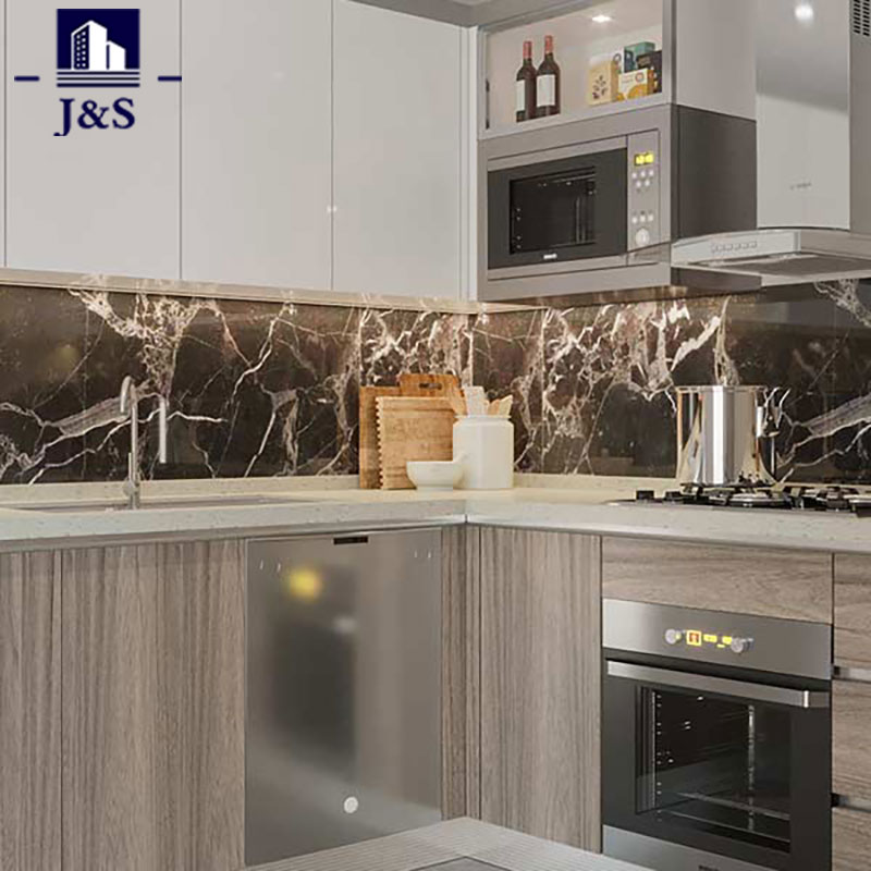 அசல் மர நிறம் உங்களை மீண்டும் இயல்புக்கு கொண்டு வந்து நிதானமாக உணர்கிறது. அதே மெலமைன் கதவு அதிக அளவிலான ஸ்மார்ட் ஃபேஷன் டிசைனை உருவாக்குகிறது. திட நிறத்தை மர தானிய நிறத்துடன் இணைத்து கருப்பு நிற கைப்பிடியை ஆடம்பர உணர்வை பிரதிபலிக்கிறது. உங்களுக்காக பிரத்யேகமாக உங்கள் சூடான சமையலறையை உருவாக்க, அனுபவம் வாய்ந்த வடிவமைப்பாளர்கள் எங்களிடம் உள்ளனர். படுக்கையறை, குளியலறை
